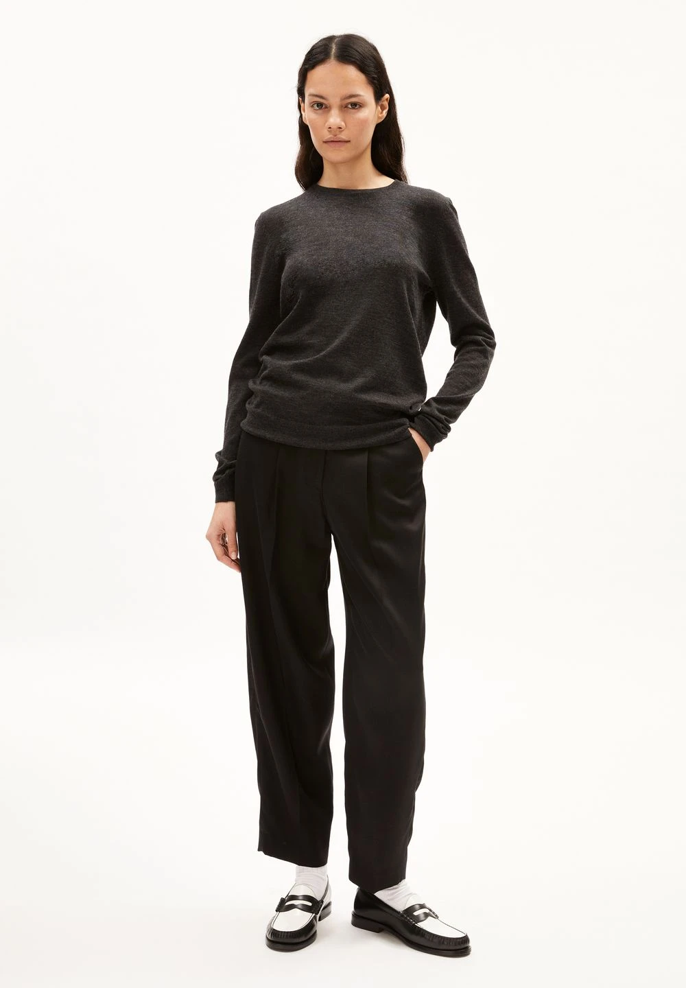 Der Strickpullover Eldiaa aus 100% extrafeiner Merinowolle mit Rundhals ist ein schlichtes, bequemes Oberteil für die kältere Jahreszeit. Die weiche Merinowolle hält dich warm, ist atmungsaktiv und sorgt dafür, dass du dich rundum wohlfühlst. Mit seiner schmalen Passform sitzt der Pullover angenehm am Körper und passt zu jedem Outfit.