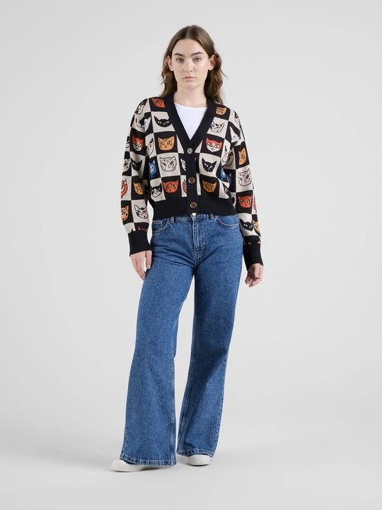 Der Cardigan Kanan Cat Bingo aus 100% Bio-Baumwolle überzeugt mit Relaxed Fit, leicht verkürzter Länge und voluminösen langen Ärmeln. Große Corozo-Knöpfe vorne und gerippte Abschlüsse an Saum und Bündchen runden den Look ab. Der verspielte Katzen-Bingo-Jacquard macht den Cardigan zu einem echten Hingucker – ein Design, das es so nur bei Dedicated gibt.