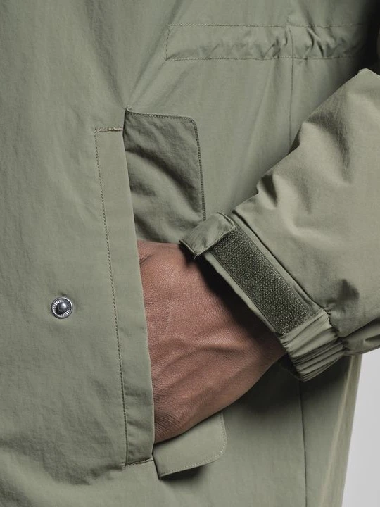 Der leicht gefütterte Fishtail-Parka für Herren überzeugt mit lockerer Passform und einem verstellbaren Taillenzug, dessen Nähte außen sichtbar sind. Der Saum lässt sich dank Knöpfen hinten flexibel verkürzen. Gefertigt aus recyceltem Nylon mit Fütterung aus recyceltem Polyester bietet der Parka Wärme, Komfort und Langlebigkeit. Zwei Paspeltaschen mit Klappe vorne und eine aufgesetzte Innentasche mit Reißverschluss sorgen für praktische Stauraumlösungen. Zusätzlich schützt die BIONIC-FINISH® ECO-Ausrüstung vor leichtem Regen und Wind.