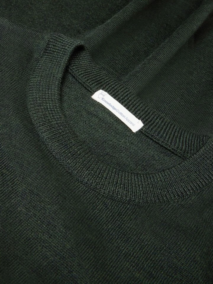 Luxuriös weich und puristisch in Design: Der Strickpullover Merino Crew Neck von Knowledge Cotton besteht zu 100 % aus Merinowolle und überzeugt mit klassischem Schnitt, Rundhalsausschnitt und Feinstrick-Qualität. Er liegt im Regular Fit, ist temperaturregulierend, atmungsaktiv und angenehm auf der Haut – perfekt, um ihn solo oder als Layer zu tragen. Ein nachhaltiger Wollpullover, der Stil und Komfort stilvoll vereint.