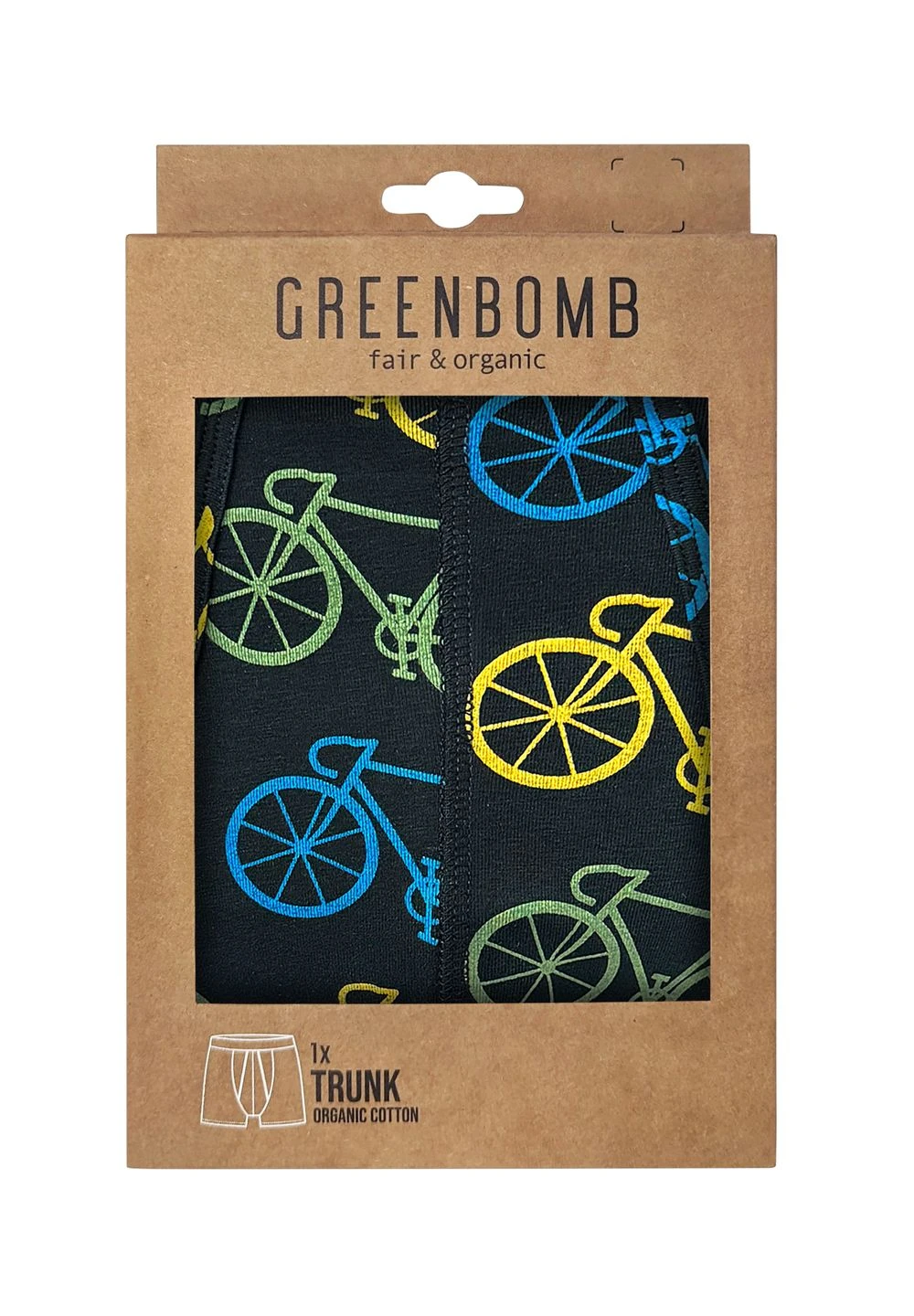 Bunte, nachhaltige Unterwäsche für Herren von greenbomb mit Bike Motiv.
